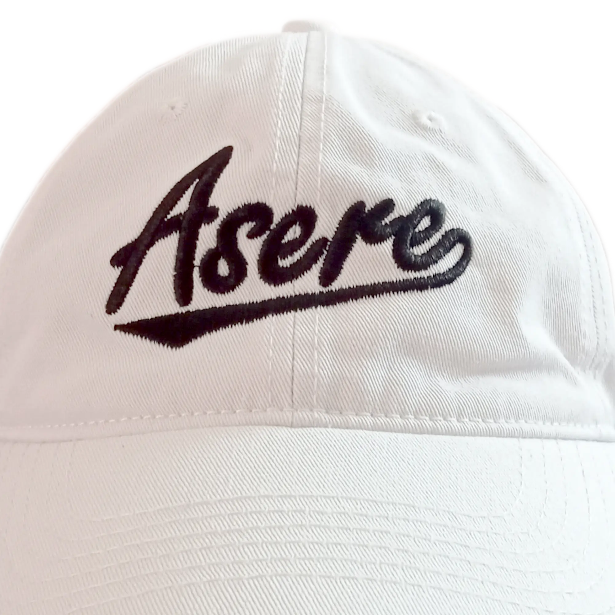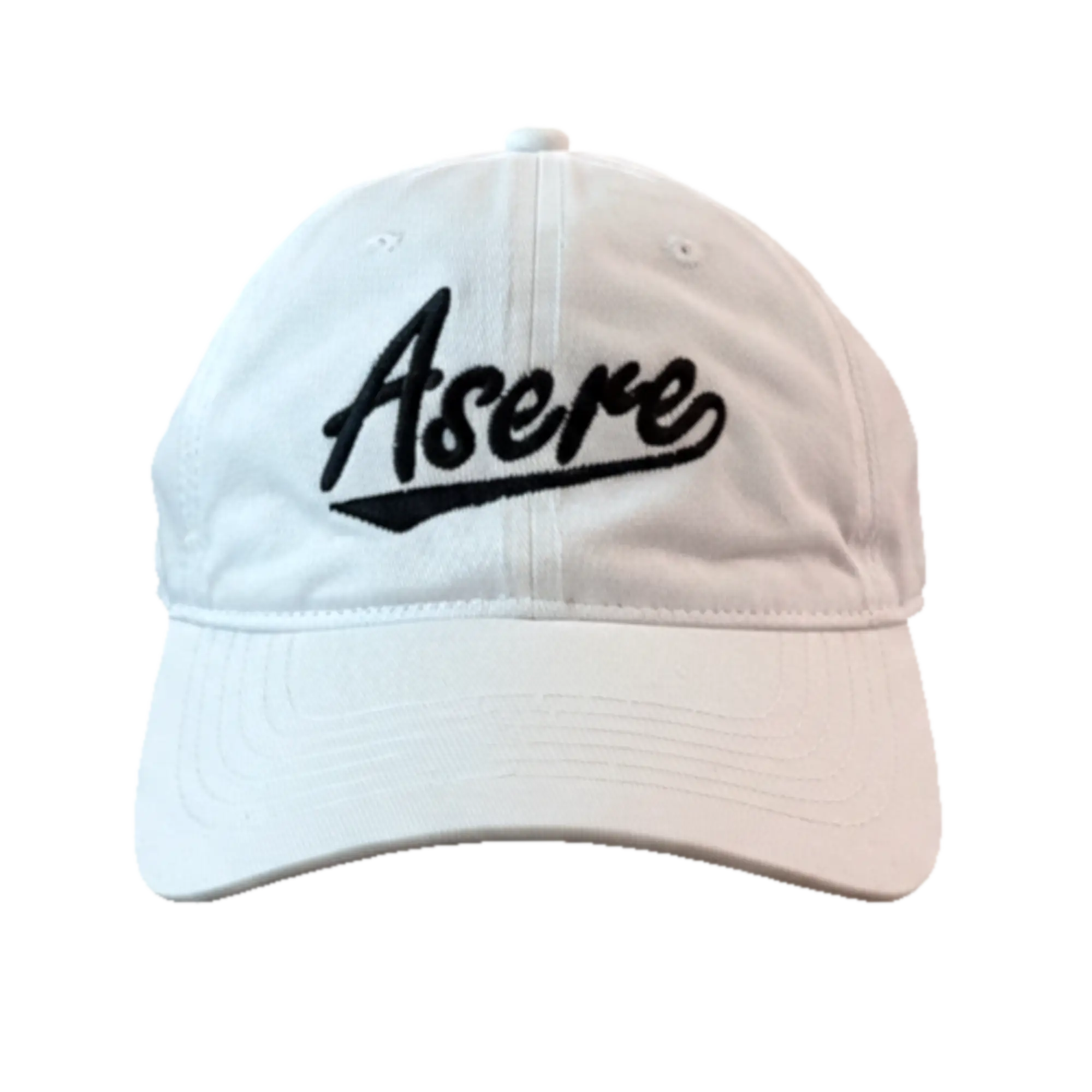 Asere Gorra Bordada. Este diseño es una referencia al lenguaje cubano más autóctono entendido como parte viva de la cultura cubana. Asere es una expresión nacida en los barrios humildes de Cuba, y que por mucho tiempo fue considerada chabacana o marginal. Sin embargo, como ocurre con tantas joyas del lenguaje popular, Asere trascendió su origen para convertirse en una forma universalmente reconocida para decir amigo, hermano, compañero entre los cubanos. Hoy esta palabra forma parte del habla cotidiana nuestra (dentro y fuera de la isla), representando cercanía, complicidad y autenticidad. Esta camiseta captura su evolución desde el barrio al corazón de la identidad cultural.