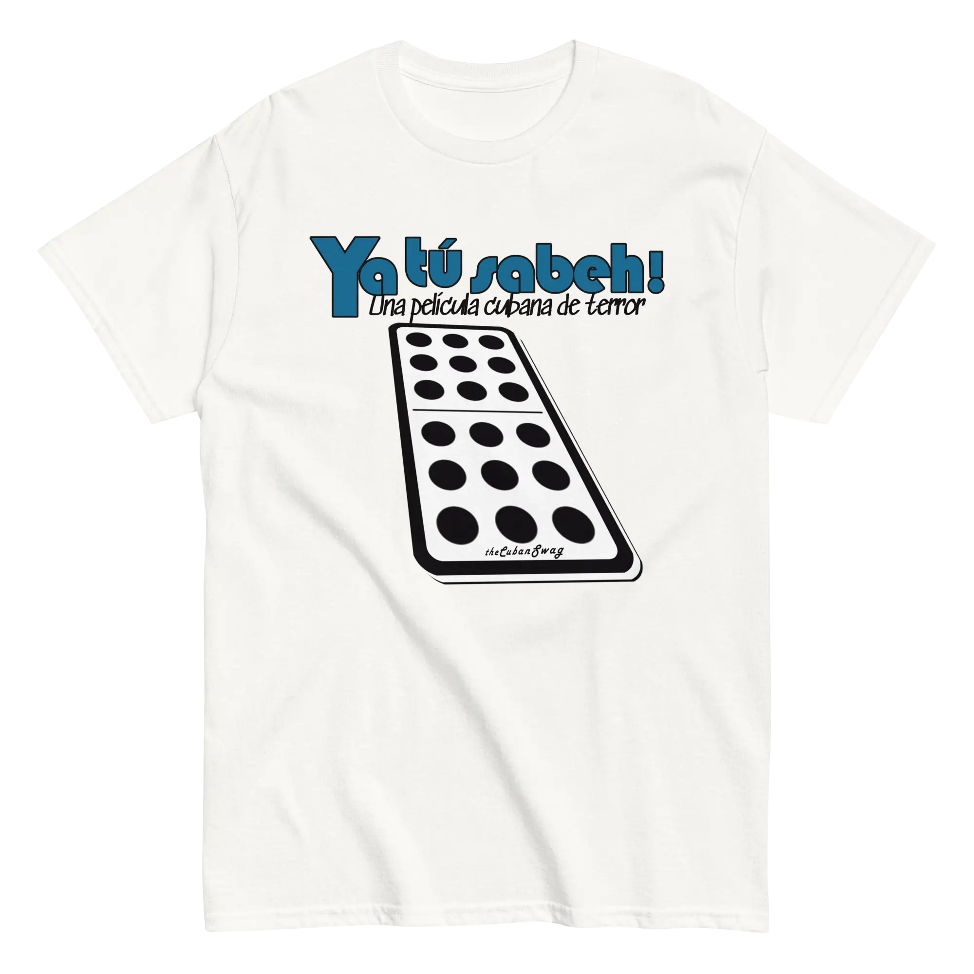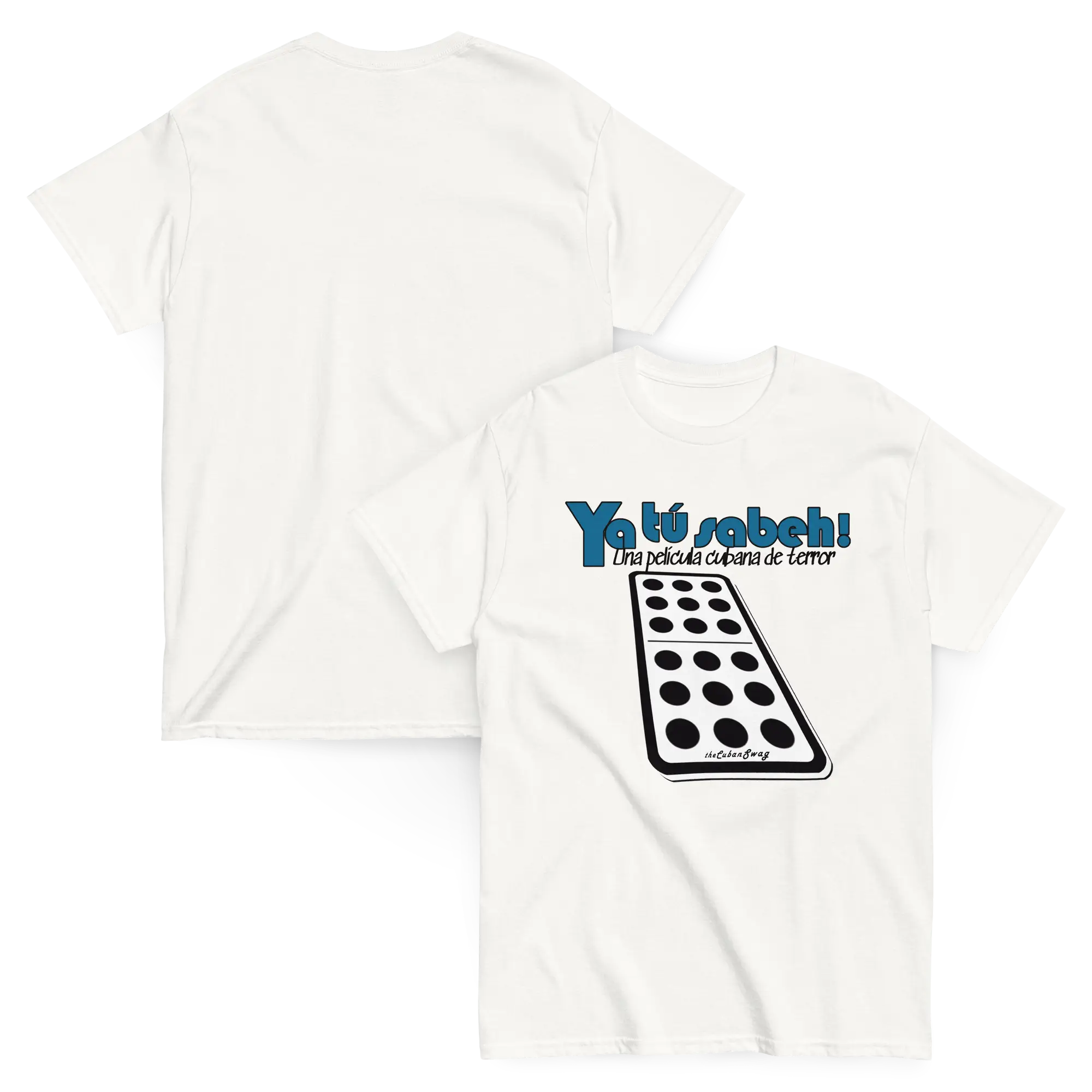 Un diseño pensado para ese cómplice de mil batallas. Cubaneo en estado puro, esa manera de decir mucho con pocas palabras. Entre los cubanos, esta frase es la clave para aludir a lo que no se quiere —o no se puede— decir abiertamente. El doble nueve trae a la memoria aquella canción prohibida que denuncia las cargas y dificultades que soporta el pueblo cubano, mientras el estilo visual, con su aire de cartel de película, roza lo absurdo. Y claro… ¿no es acaso terrorífico lo que te estoy contando?